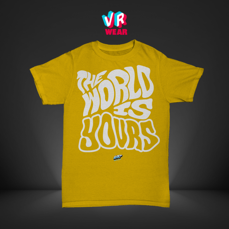 Elevate your wardrobe and inspire yourself with the VR Battles "The World is Yours" T-Shirt.